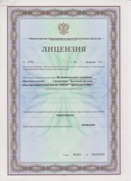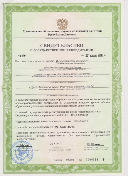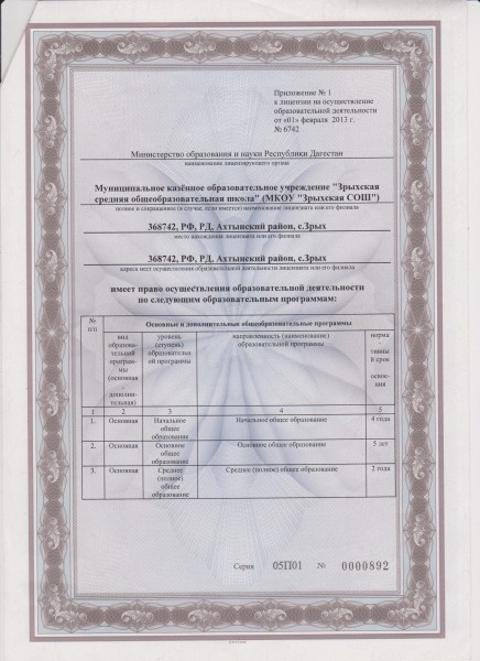 Адрес местонахождения образовательной организации* 368742, Республика Дагестан, Ахтынский район, с.Зрых,улица школьная 1а