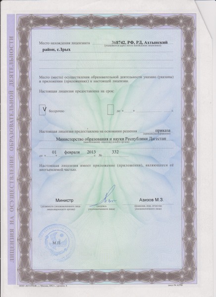 368730, Республика Дагестан, Ахтынский район, с. Ахты, ул. Г. Ахтынского, 3